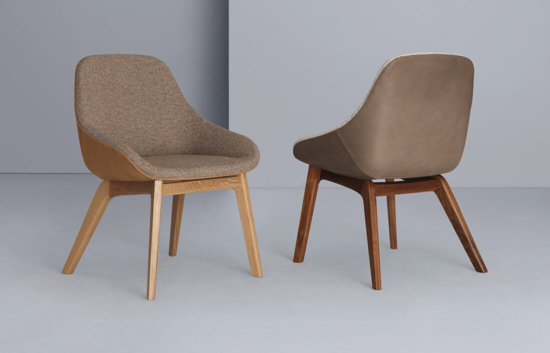 De Morph Dining chair is ontworpen door Formstelle voor Zeitraum. De stoffeerde armstoel kan worden uitgevoerd met en onderstel van eiken of Amerikaans notenhout onderstel.