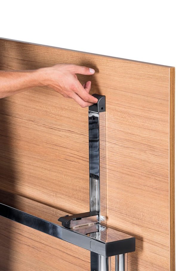 Geschikt voor diverse omgevingen zoals kantoren, vergaderruimtes, cafés/restaurants waar de ruimte beperkt is. Volledig verticaal inklapbaar wanneer deze niet in gebruik is.
