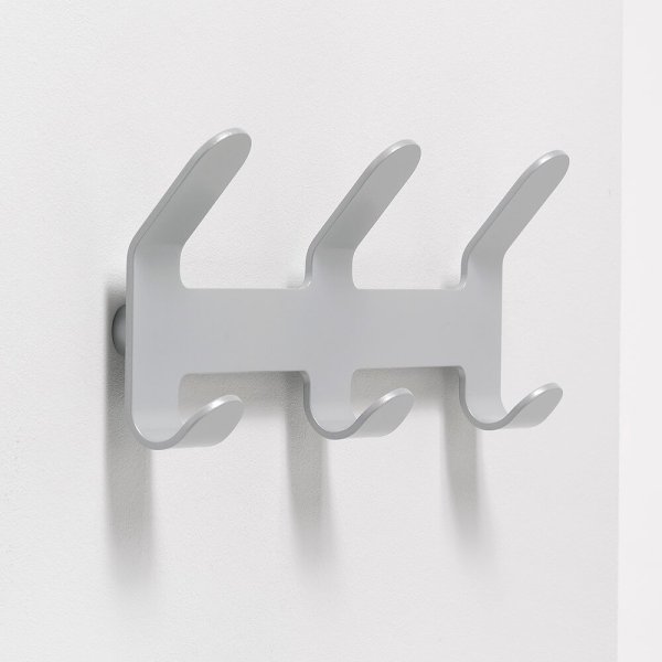 Kapstok Quattro van Van Esch is ontworpen door de Britse designer James Irvine. Zijn ontwerpen hebben zonder uitzondering een krachtige uitstraling. Soms komt die voort uit de specifieke vorm, soms uit eenvoud. Dat is het geval bij Quattro en Sei, een wandkapstok met twee of drie dubbele haken, uitgevoerd in zwart, wit of metallic grijs geëpoxeerd staal. Quattro en Sei sluiten aan bij Dodici en Drip, eveneens ontwerpen van James Irvine.