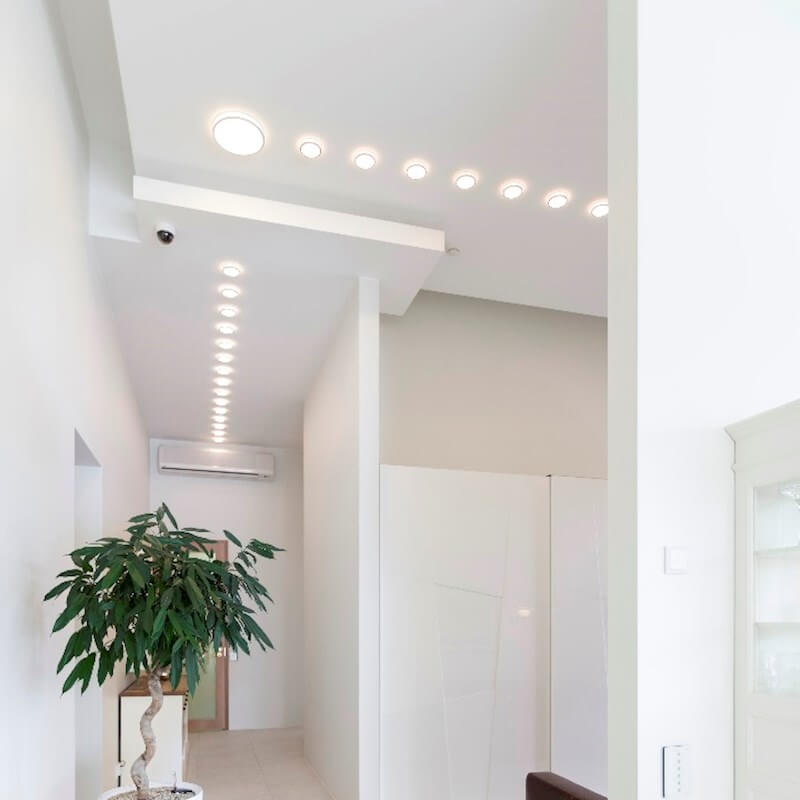 De armatuur straalt een diffuus en aangenaam naar beneden gericht licht uit. De witte opalen schijf zorgt voor een gelijkmatige verlichting van het oppervlak. Het opalen front lijkt door de manier van ophanging boven het plafond te zweven, waarbij het licht wegglipt via de opening tussen de schijf en de armatuur. Hierdoor ontstaat een andere visuele ervaring.