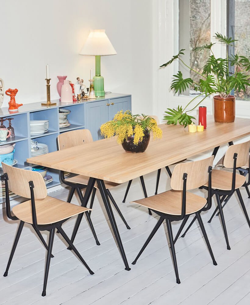 Pyramid 01 tafel van Hay is een ontwerp van Wim Rietveld. De tafel heeft een dunne basis van plaatstaal met een eiken tafelblad voor een functionele en overzichtelijke expressie. Het lichte ontwerp en de slijtvaste kwaliteit maken het geschikt voor gebruik in onderwijsinstellingen en bedrijfsomgevingen.