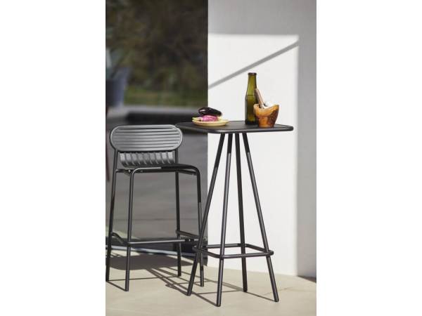 De High bar table van Petite Friture is een ontwerp van Studio BrichetZiegler. Deze statafel is onderdeel van de Week-End collectie die bestaat een een compleet assortiment tuinmeubilair. De ovale en ronde vormen in combinatie met de contrasterende lamellen maken samen een grafisch geheel.