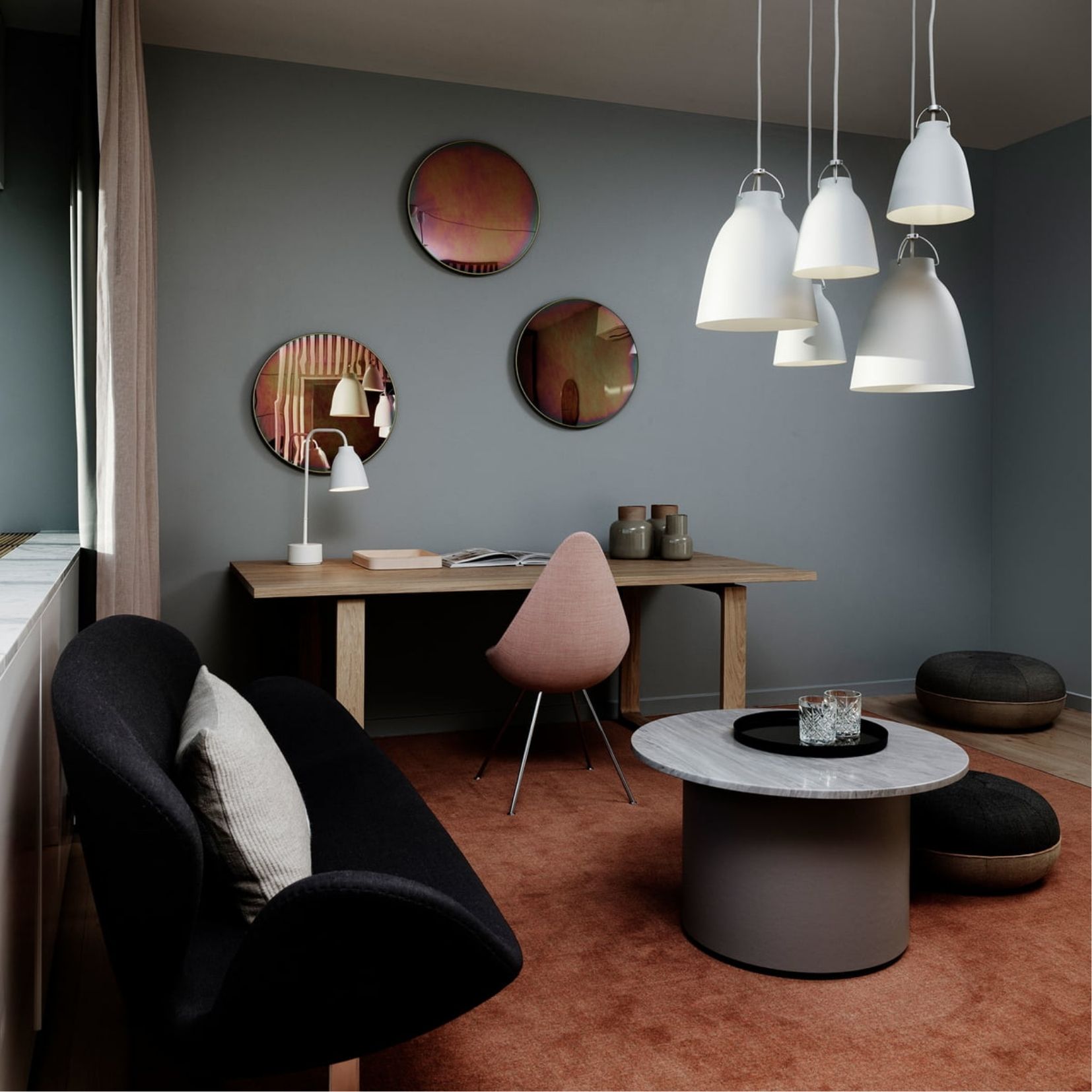 De Caravaggio hanglamp is ontworpen door Cecilie Manz. De hanglamp is een industriële hanglamp voor boven de eettafel. De simplistische Caravaggio is ontworpen door Cecilie Manz. Natuurlijk is de Caravaggio in verschillende kleuren en uitvoeringen te verkrijgen. Het snoer is altijd 200cm lang, zodat je zelf kan bepalen op welke hoogte je de lamp hangt. Ook kan je de lampen leuk met elkaar combineren om een cluster te vormen. De lamp is in verschillende kleuren beschikbaar.