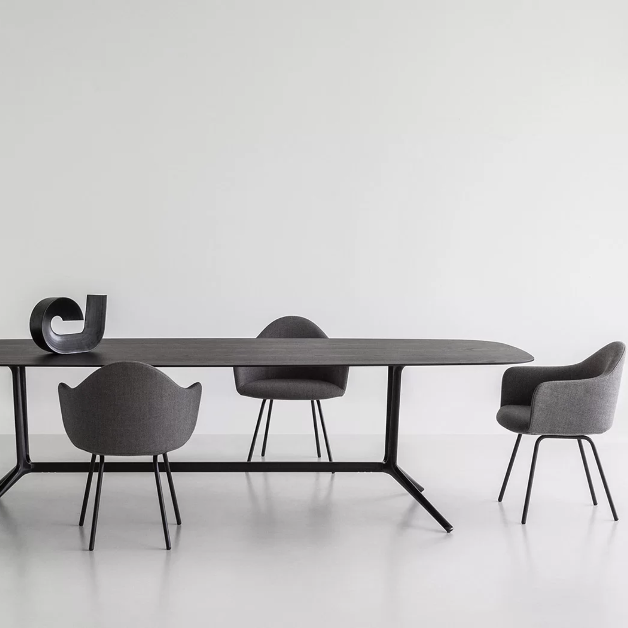 Het profiel is een kruising tussen de Scandinavische essentie en het hoogste Italiaanse vakmanschap. Het blad, die in verschillende materialen en afwerkingen besteld kan worden, strekt zich uit tot 3,60 meter voor een extreem lichte en delicate vergadertafel, ideaal in de ruimtes, van kantoor tot thuis. Alle materialen zijn demontabel en recyclebaar. En in dit geval is duurzaamheid geen pad, maar de hoofdweg van Lapalma.