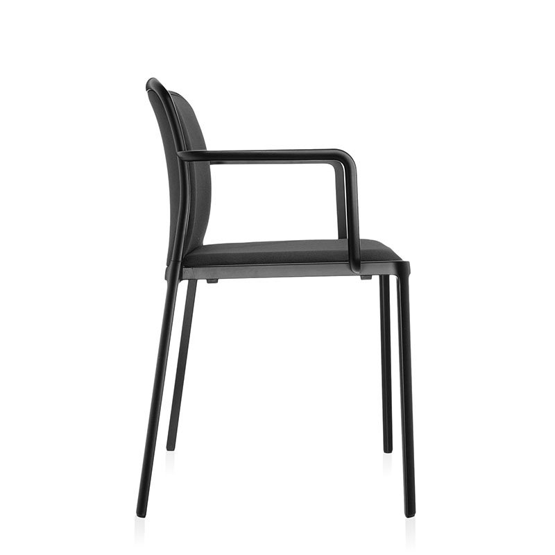 Het frame is van gepolijst of zwart/wit geschilderd aluminium. Kan bekleed worden in 3 types stof (Kvadrat, Trevira of Lycra) in 13 verschillende kleuren. Een mooie aanvulling op de bestaande Audrey stoel van Kartell.