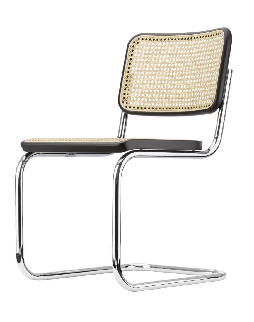 Met (S 64) of zonder (S 32) armleuningen. Frame van verchroomde stalen buizen. Houten onderdelen van gebeitst beuken of afgelakt. Zitting en rugleuning bespannen met gevlochten riet*, netwave of gepolsterd en met leder of stof overtrokken.