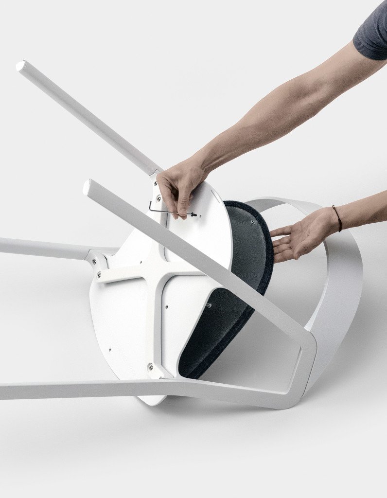 De Compas chair van Kristalia is ontworpen door Patrick Norguet. Er kan gekozen worden voor een los zitkussen of een vast zitkussen in verschillende stofsoorten.