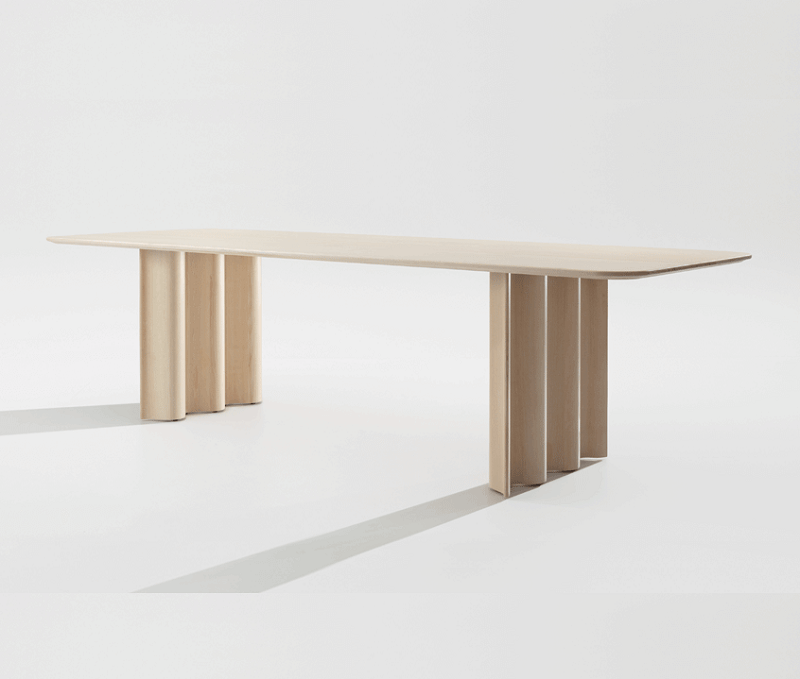 De Curtain tafel is ontworpen door het Berlijnse duo Läufer & Keichel voor Zeitraum. De tafel is gemaakt van massiefhout en verkijgbaar in wit geolied essen, eiken, eiken gebeitst, Amerikaans kersen, Amerikaans walnoot.