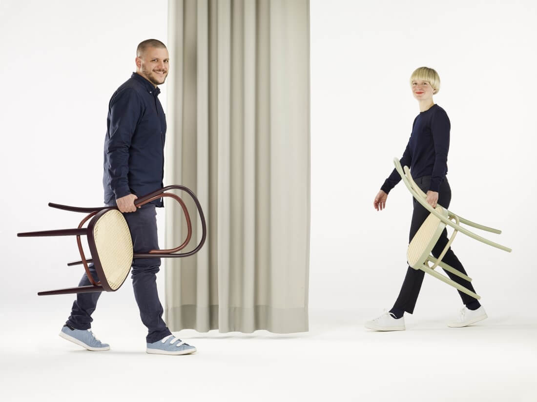 De ‘standaard’ 214 stoel is in 1859 ontworpen door Michal Thonet. Vanwege het 200-jarig bestaan van Thonet heeft Studio Besau Marguerre de 214 stoel opnieuw geïnterpreteerd. Daaruit is de Two tone, twee kleurige, uitvoering van de stoel gelanceerd.