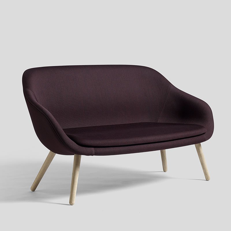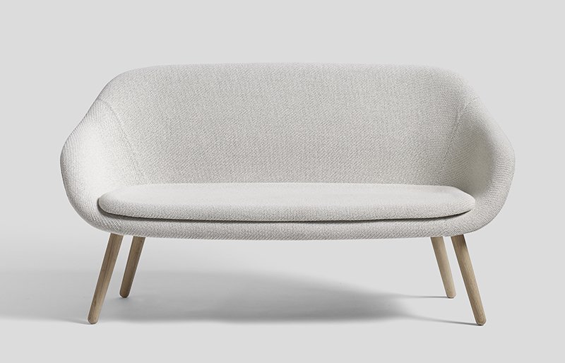De About a Lounge sofa is ontworpen door Hee Welling voor Hay. Het onderstel is verkrijgbaar in gezeept eiken, gelakt eiken, eiken zwart gebeitst en eiken mat gelakt.