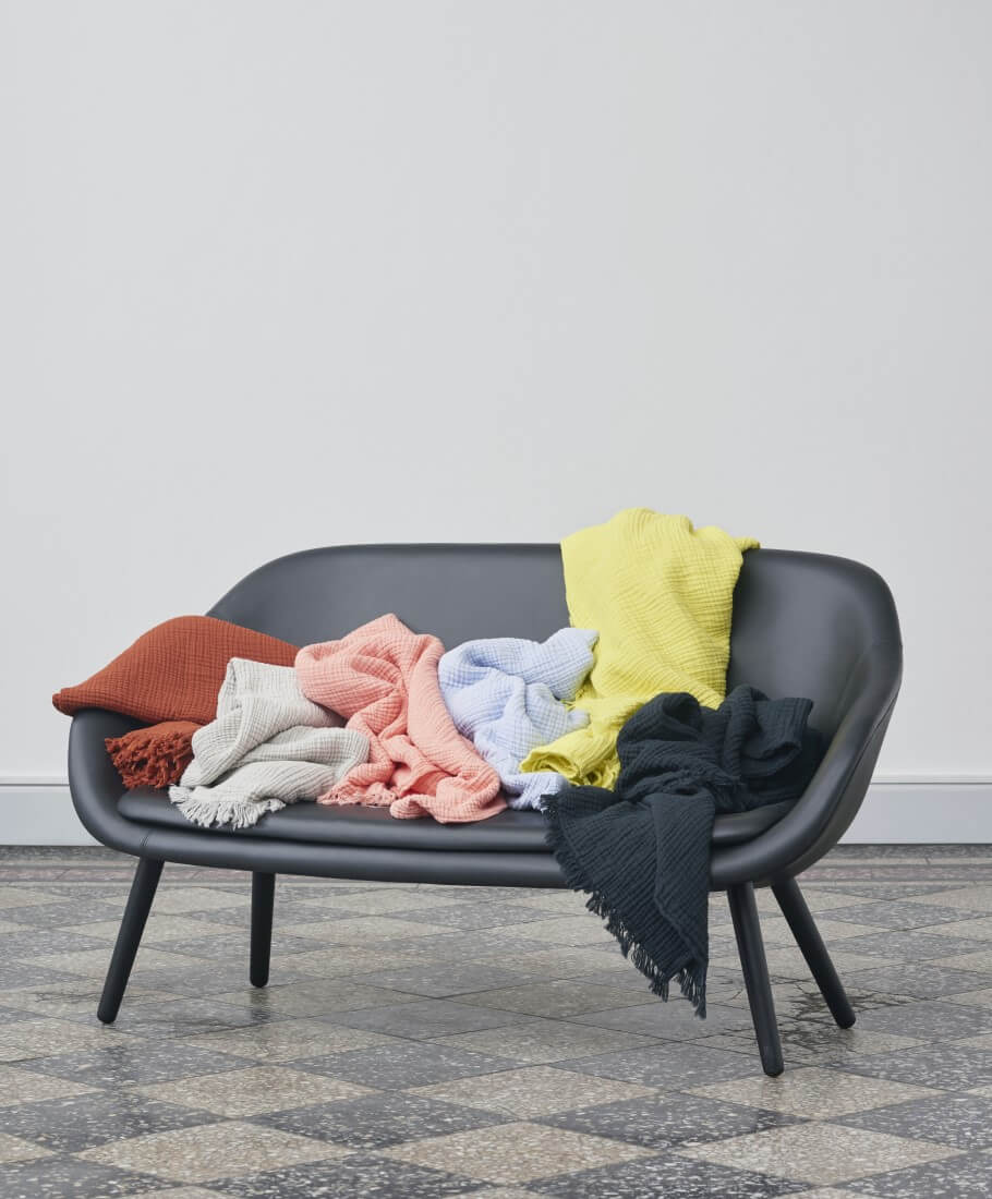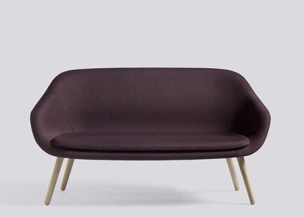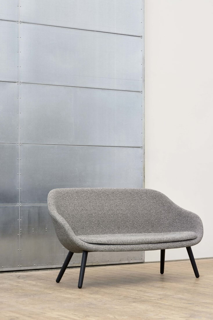 De About a Lounge sofa is ontworpen door Hee Welling voor Hay. Het onderstel is verkrijgbaar in gezeept eiken, gelakt eiken, eiken zwart gebeitst en eiken mat gelakt.
