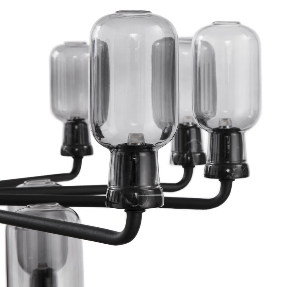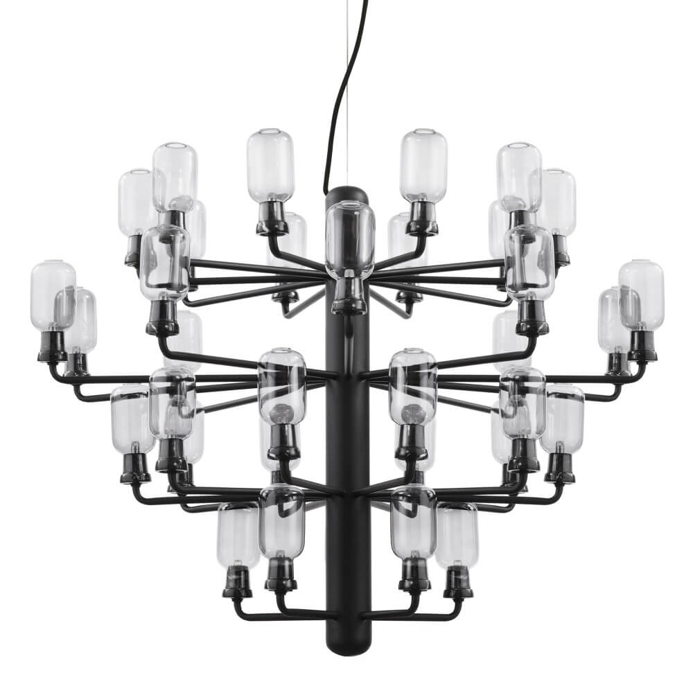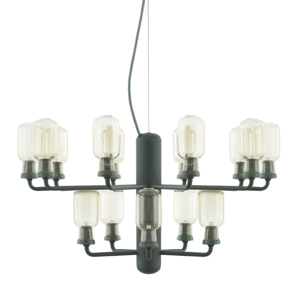 De Amp Chandelier is ontworpen door Simon Legald voor Normann Copenhagen. De kroonluchter is geïnspireerd op de buisvormige versterkers uit de jaren 60 (amplifiers). Dit is terug te zien aan de vorm van de glazen kappen. Bij andere modellen in de Amp collectie is deze vorm nog sterker teruggebracht in de lichtbronnen.