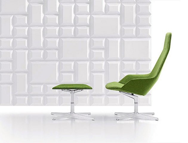 De Aston Lounge is de ideale fauteuil Ontworpen door Jean-Marie Massaud voor Arper. Er is ook een bijpassende voetenbank in de collectie opgenomen.