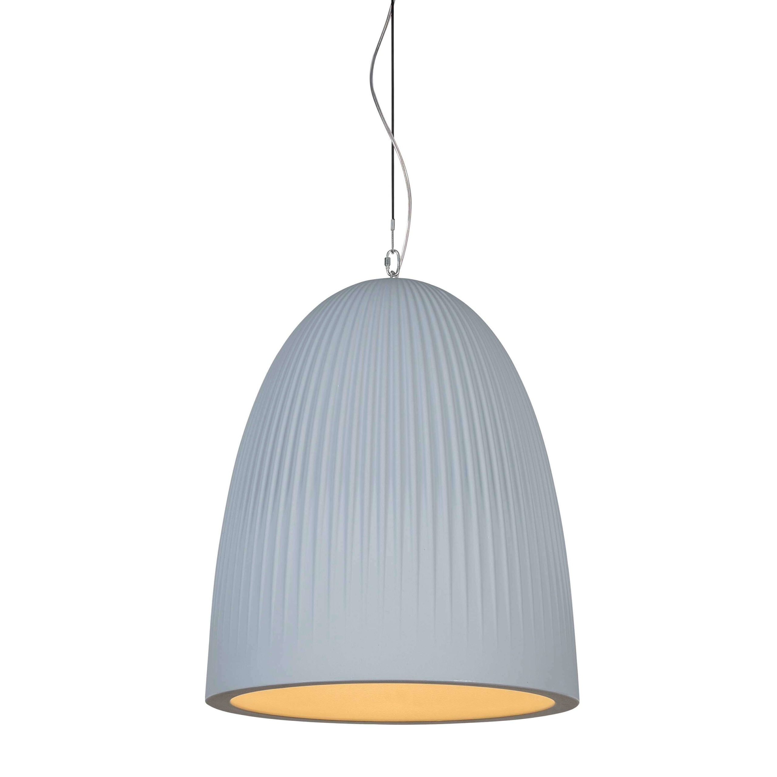 De Bell Dome van Formadri is verkrijgbaar in twee maten, diameter 50 en 70 cm. Beide maten zijn leverbaar in twee uitvoeringen: glad en rib. De pendellamp is dubbelwandig en is gefabriceerd van duurzaam PE en is onbreekbaar.