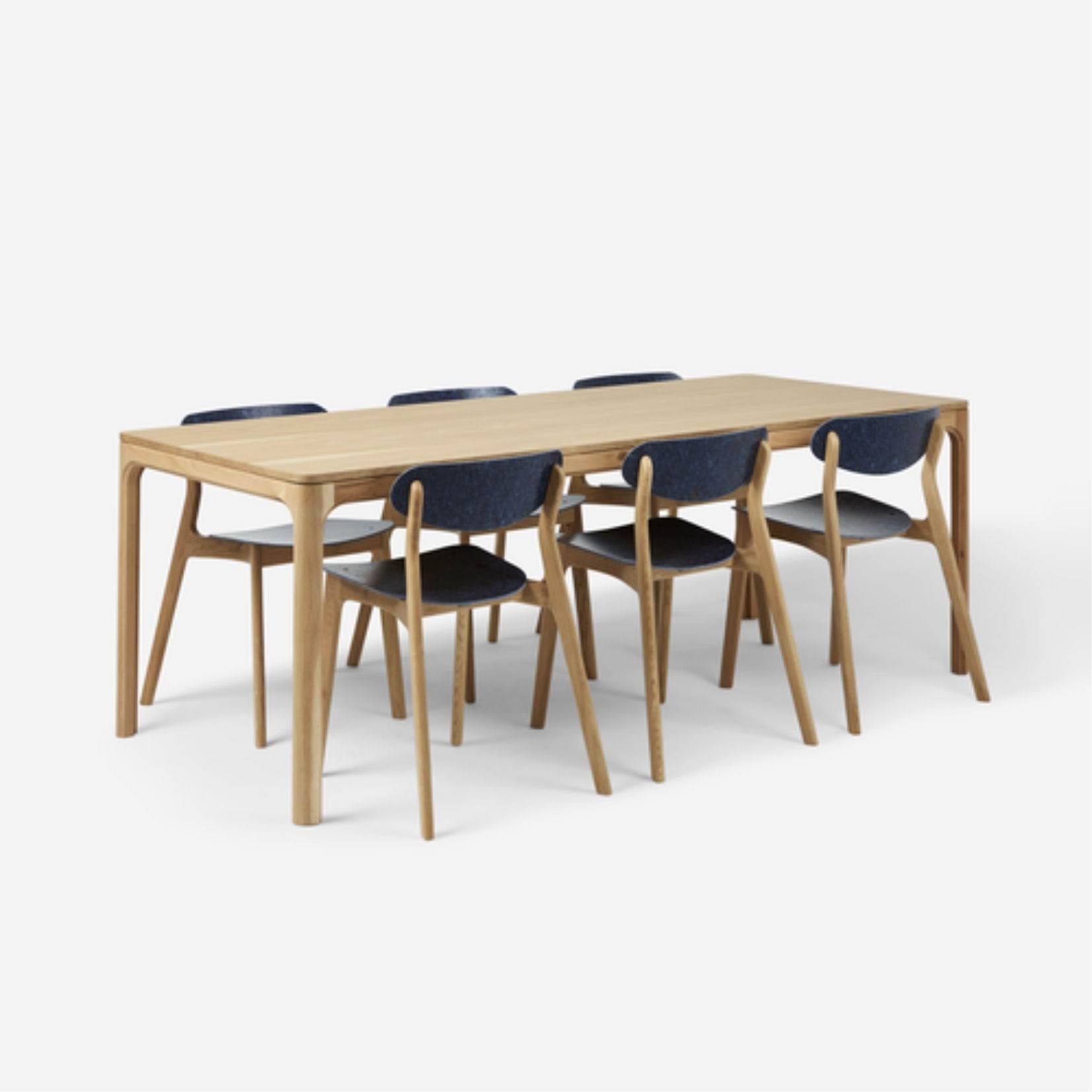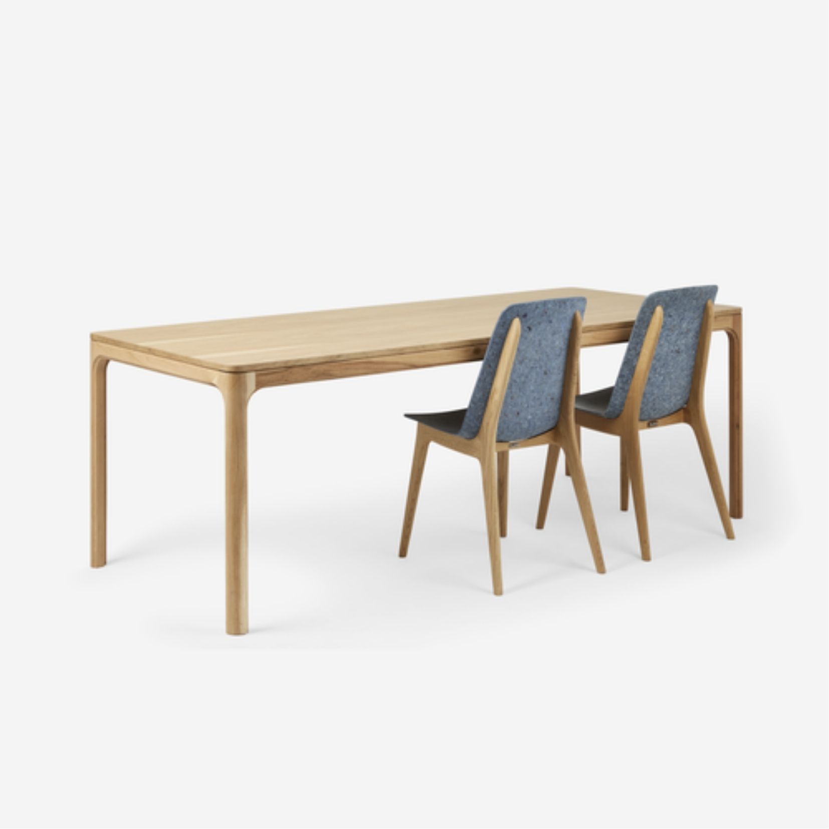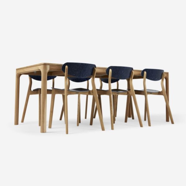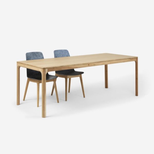 De tafel is verkrijgbaar in vele vormen en maten en kan ook op maat worden gemaakt. U kunt kiezen tussen FSC-gecertificeerd eikenhout of notenhout met een vleugje essenhout. Het gefineerde tafelblad is ook verkrijgbaar in Planqtextile. Wanneer het hierin is uitgevoerd, lijkt het materiaal op marmer. De textielvezels zijn zichtbaar in het blad en vormen de nerven van het blad. Elke tafel is daardoor uniek en duurzaam.