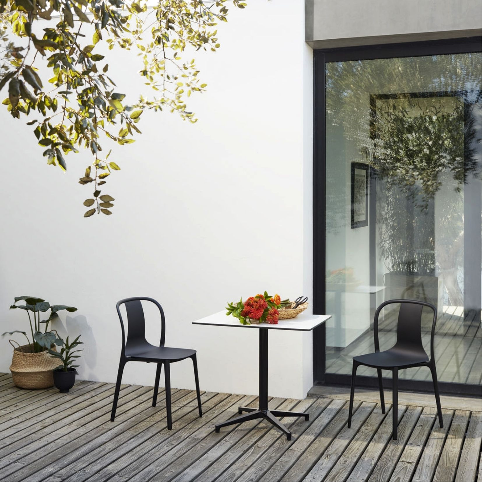 De Bistro Tables van Ronan en Erwan Bouroullec delen het elegante onderstel met de Softshell Chair. Door zijn sobere vorm kan de tafel echter worden gecombineerd met de meest uiteenlopende stoelen en is hij ook geschikt voor gebruik buitenshuis in de versie met een tafelblad van massief kernmateriaal. De Bistrotafels zijn verkrijgbaar met ronde en vierkante tafelbladen en ook in een hoge versie als statafel.