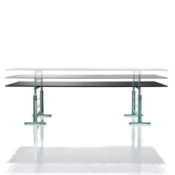 Daarnaast is er ook een rechthoekige tafel ontworpen die in drie hoogtes gezet kan worden. Dit model is enkel geschikt voor binnengebruik. Het blad heeft een afmeting van 290 bij 95 centimeter.