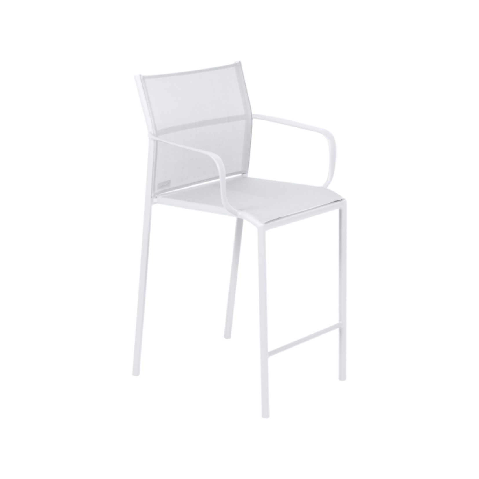Dit is de Fermob Cadiz barkruk met armleuningen. De kruk heeft een hoogte van 104 centimeter, een lengte van 49.6 centimeter en de breedte is 58 centimeter. De frame van kruk is gemaakt van aluminium en is afgewerkt met een poedercoating van een anti-UV laag. De zitting en de rug van de kruk is gemaakt van Batyline materiaal. Deze stof is UV-resistent en rekt niet uit. Daarnaast is Batyline vlek- en schimmelbestendig en hypoallergeen. Ook niet onbelangrijk, de stof is schoon te maken met wat water en een sopje.