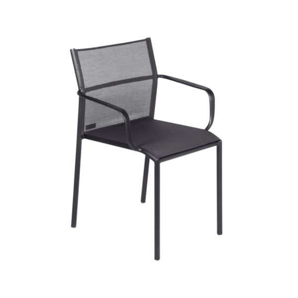 De Cadiz tuinstoel ontworpen door Antoine Lesur beschikt over armleuningen en biedt een uitstekend zitcomfort dankzij de breuk in de lijnen van de rugleuning en de zitting die de rondingen van het lichaam volgt en de flexibiliteit van de TTE (Outdoor Textile Canvas).