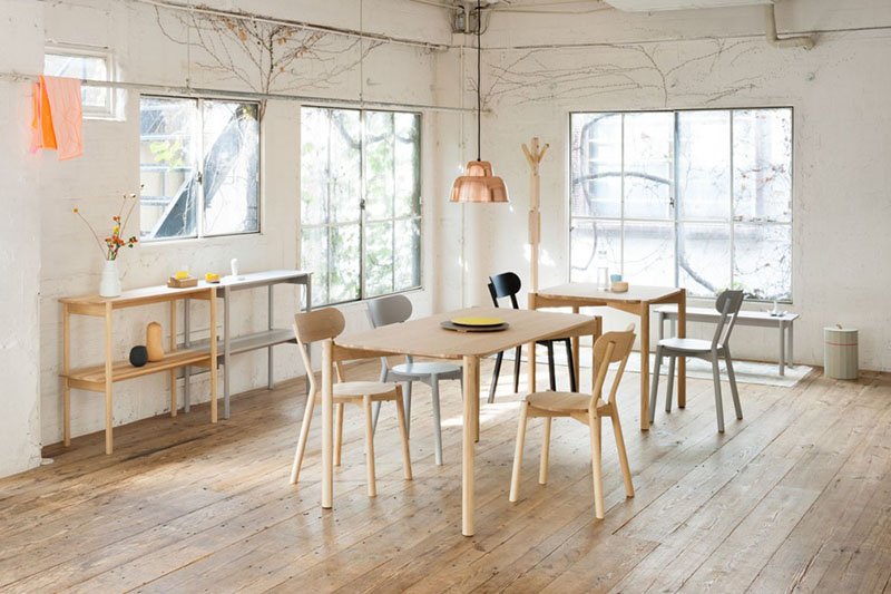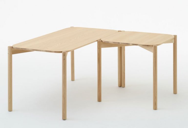 Twee houten tafels in de Castor serie van Karimoku New standard.
