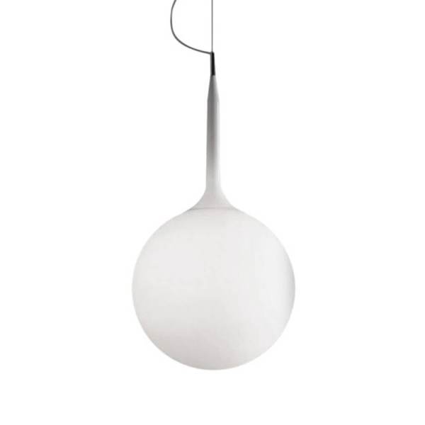 Castore van Artemide is een ontwerp van Huub Ubbens en Michele De Lucchi. De bolvormige diffuser is versterkt door een afneembare fitting en een taps verlopende lichtgevende steel, die de overgang van het sterke diffuser licht naar het gebied van de lamphouder verzacht. De Catsore hanglamp is er in 4 maten 14, 25, 35 en 42 cm. Ook verkrijgbaar als tafel- en staandelamp.