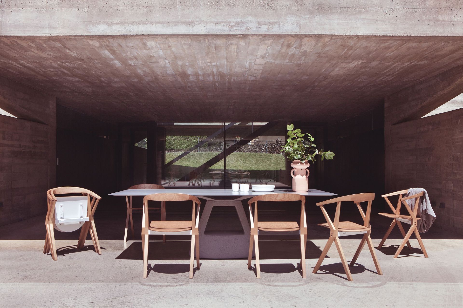 Als aanvulling ontwierp Konstantin Grcic de B Chair, een houten stoel met stukjes aluminium in de structuur. De poten zijn X-vormig en de stoel klapt, wat horizontaal stapelen mogelijk maakt en een