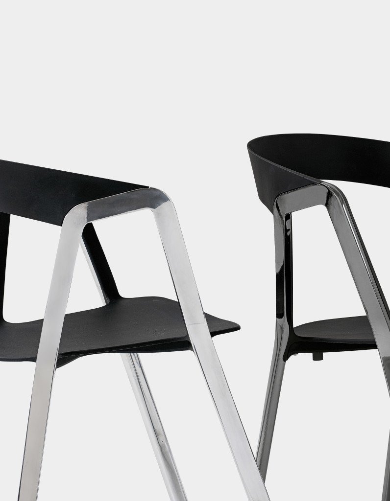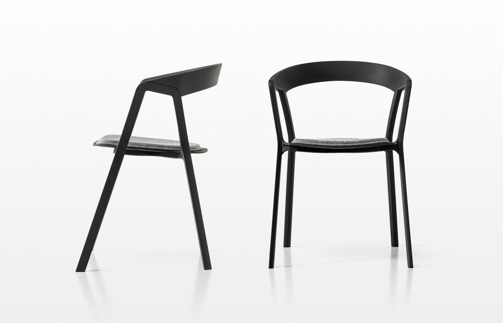 De Compas chair van Kristalia is ontworpen door Patrick Norguet. Er kan gekozen worden voor een los zitkussen of een vast zitkussen in verschillende stofsoorten.