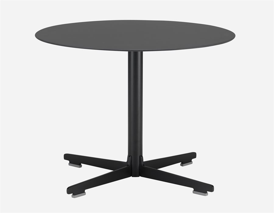 Ronde tafel met blad in Full Colour multiplex (dikte 12 mm) en onderstel gelakt staal.