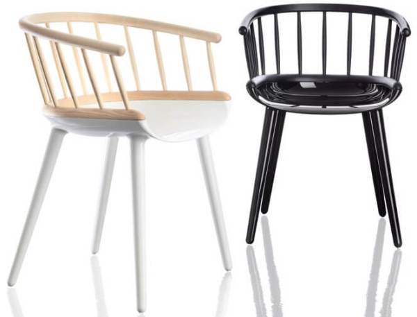 De SD1716 heeft de naam Cyborg Stick niet voor niets gekregen. De rugleuning bestaat uit meerdere essenhouten spijlen. Deze stoel is verkrijgbaar met een wit onderstel waarbij het hout neutraal is of volledig in het zwart.