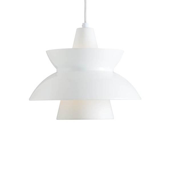 De Doo-Wop is ontworpen door Louis Poulsen A/S in samenwerking met het Ministerie van Marine. De armatuur werpt het zachte licht grotendeels naar beneden door de wit gelakte, conische reflector aan de binnenkant. De reflector aan de buitenkant, het hoofdscherm, helpt het licht naar boven en beneden te richten, terwijl hij tegelijkertijd een zacht, diffuus licht verspreidt. De binnenkant van het hoofdscherm wordt verlicht door een opening in de kleinere, conische reflector. Leverbaar in de kleuren wit, donkergrijs, koper, RVS gepolijst, messing.