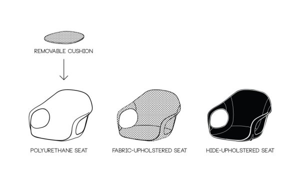 | Uitvoeringen: | gestoffeerd, met los zitkussen, polyurethaan, tuigleer |