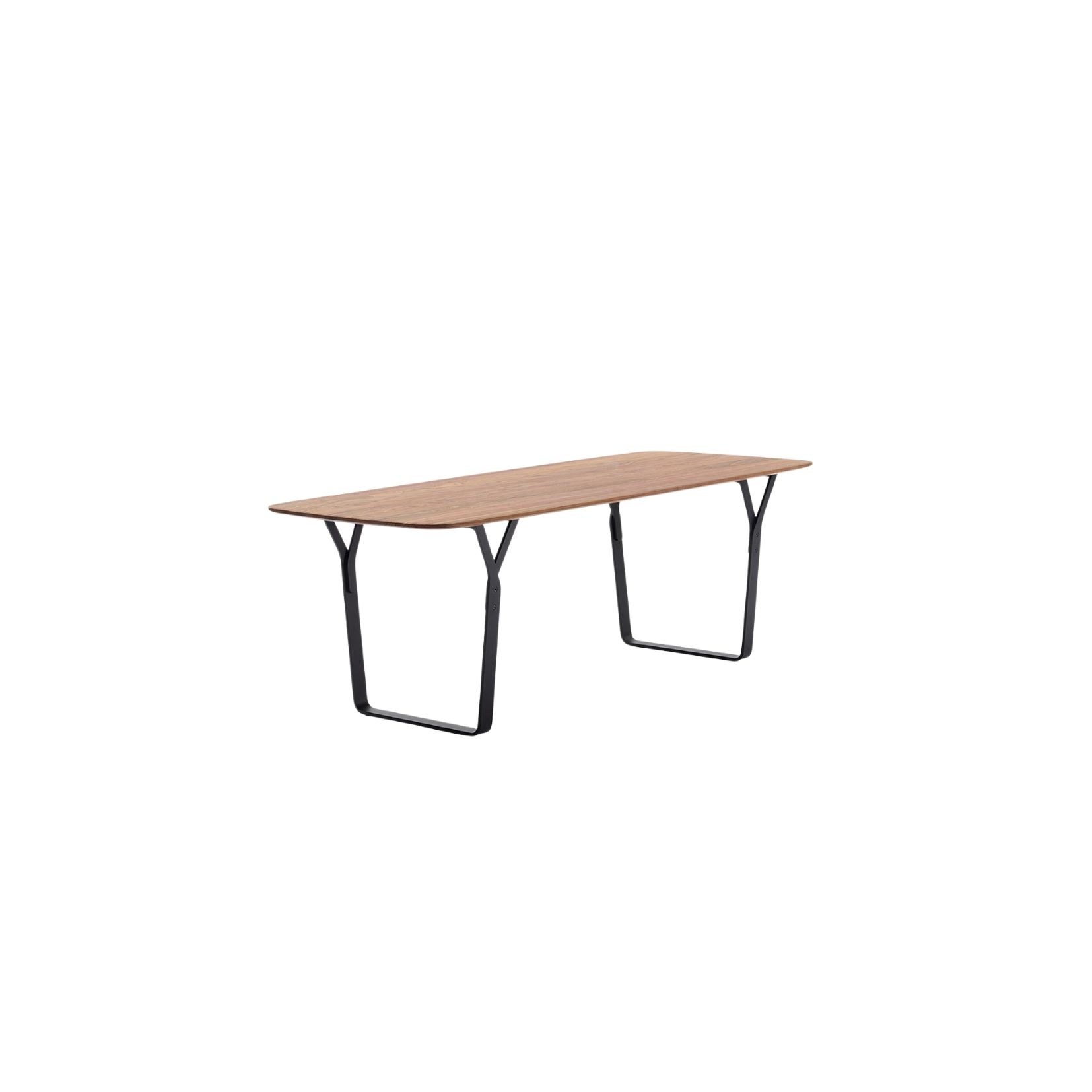 Esstential steel eettafel ontworpen door Gudmundur Ludvik en Arco Design Studio is verkrijgbaar in twee uitvoeringen: hout en staal. De Essential Wood bestaat uit een massief houten tafelblad. De Essential Steel heeft ook een massief houten tafelblad (eiken of noten), maar in dit geval is het onderstel gemaakt van staal met een epoxy fine texture afwerking.