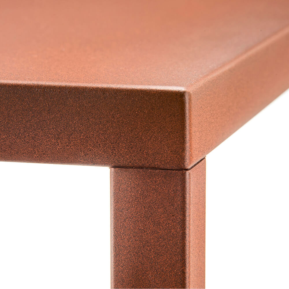 Fabbrico van Pedrali is een ontwerp van Pedrali R&D. Een verzameling van vaste tafels met verschillende afmetingen, gekenmerkt door een strak ontwerp en strakke vormen. De keuze van het staal voor zowel de bovenkant als de poten maken de tafel 100% recyclebaar. Verkrijgbaar in verschillende afwerkingen: gepoedercoat voor buiten en transparant “industrieel” effect voor gebruik binnenshuis.