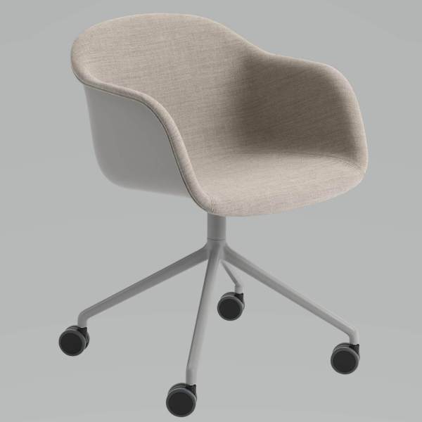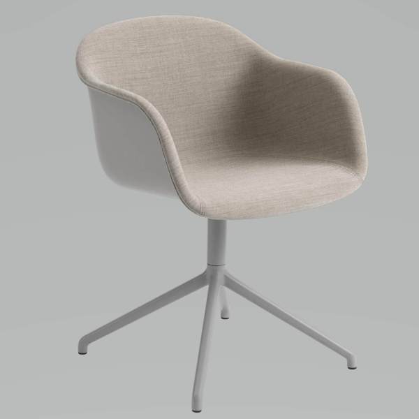 De Fiber met spinpoot is ontworpen door Iskos-Berlin voor Muuto. De stoel biedt een maximum aan comfort en neemt daarentegen een minimum aan ruimte in beslag. Het kuipje is gemaakt van een innovatief bio-composiet waarin 25% houtvezels zijn verwerkt. Van een afstand lijkt de stoel van gewoon kunststof gemaakt te zijn, maar van dichtbij kun je duidelijk de houtvezels herkennen.