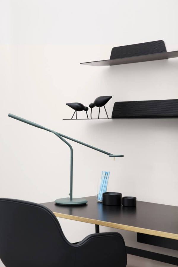 De Flow van Normann Copenhagen is ontworpen door Andreas Kowalewski. De bureaulamp kan eenvoudig in een andere positie worden gezet waardoor deze ook geschikt is voor de grotere bureaus. Het armatuur is gemaakt van staal dat voorzien is van een poedercoating het donkergroen, zwart of wit. De temperatuur van het LED-licht ligt tussen de 2800 en 3200K.