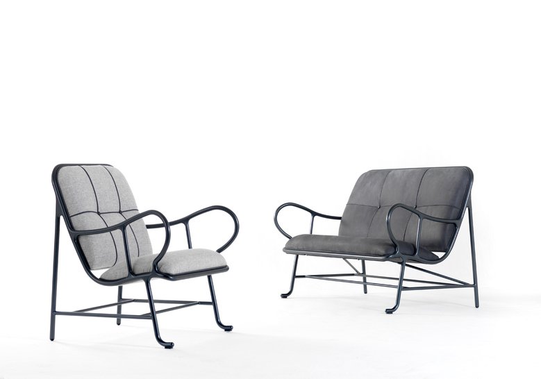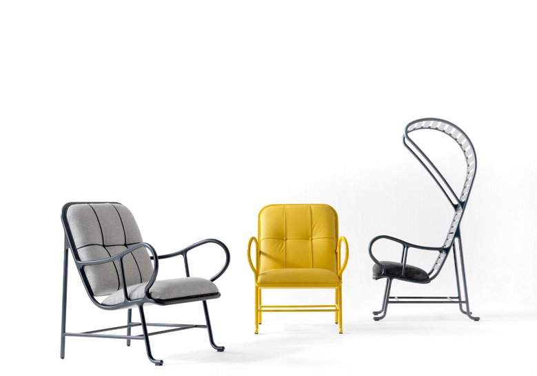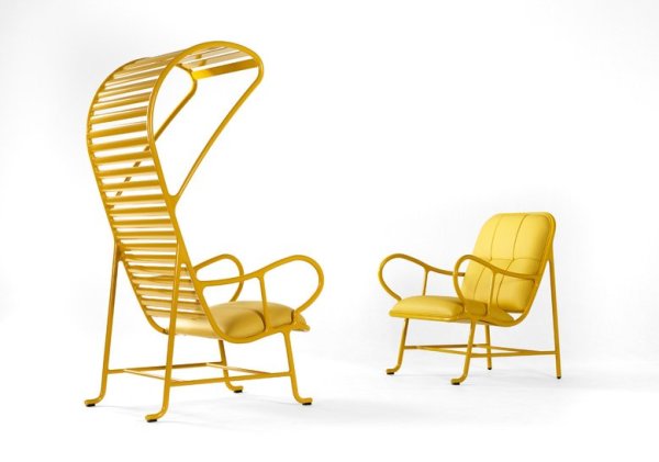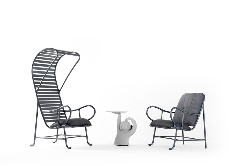 De Gardenias Indoor Armchair serie van Jaime Hayon voor BD Barcelona. Het frame is van gegoten aluminium. De Gardenias Indoor collectie bestaat uit een armstoel, een armstoel met pergola en een bankje.