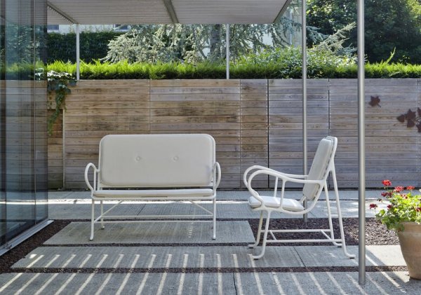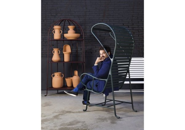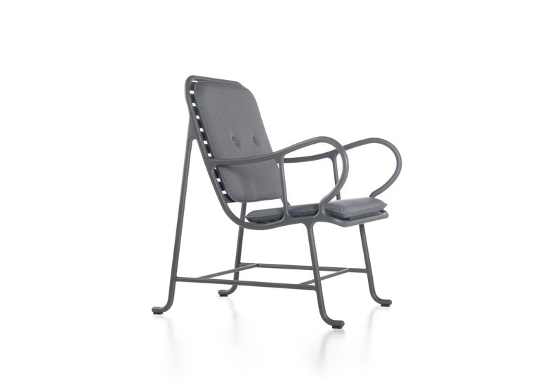 De Gardenias Outdoor Armchair serie van Jaime Hayon voor BD Barcelona. Het frame is gemaakt van gegoten en geëxtrudeerd aluminium. Gepoedercoat in de kleuren: wit (RAL 9001), groen (RAL 6021) of grijs (RAL 7015).