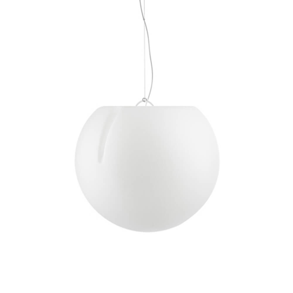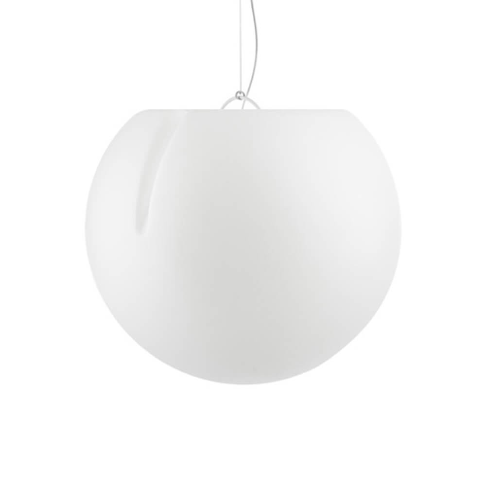 Happy Apple is een ontwerp van Alberto Casaglia Natalia Rota Notari. Energiebesparende pendellamp, gemaakt van rotatiegegoten polyethyleen. Plafondrozet met rozenkap in witte, transparante kabel.