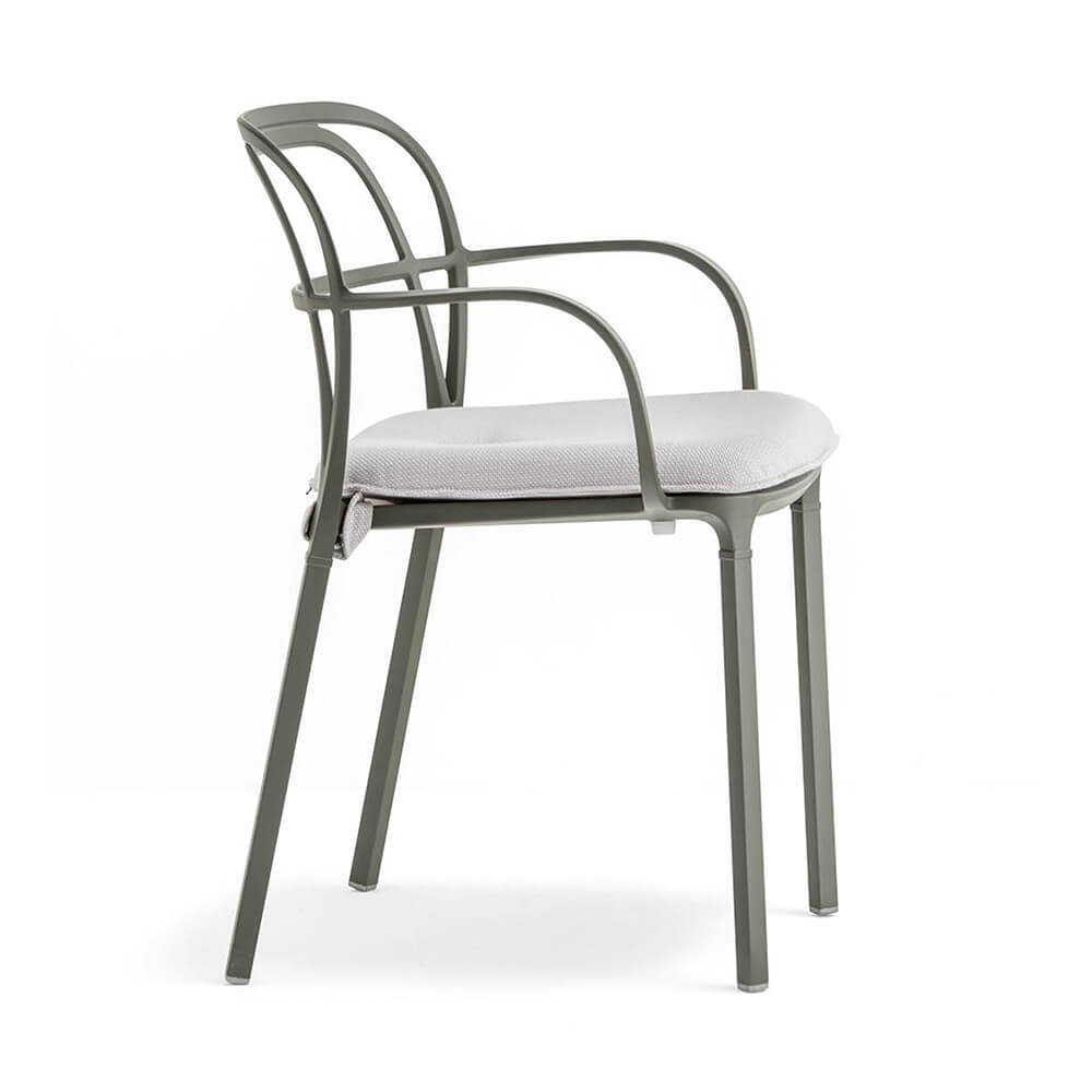 Intrigo van Pedrali is een ontwerp van Claudio Dondoli & Marco Pocci. Een combinatie van lijnen die harmonieus draaien en een betrokken, minimaal silhouet creëren. De efficiënte spuitgietaluminium technologie garandeert degelijkheid en maakt het mogelijk om verschillende secties voor rugleuningen, armleuningen en poten te vervaardigen. Intrigo is een elegante stoel die gemakkelijk in zeer verschillende omgevingen past.