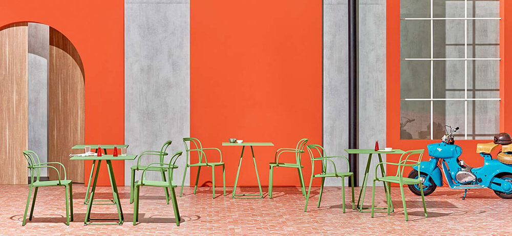 Intrigo van Pedrali is een ontwerp van Claudio Dondoli & Marco Pocci. Een combinatie van lijnen die harmonieus draaien en een betrokken, minimaal silhouet creëren. De efficiënte spuitgietaluminium technologie garandeert degelijkheid en maakt het mogelijk om verschillende secties voor rugleuningen, armleuningen en poten te vervaardigen. Intrigo is een elegante stoel die gemakkelijk in zeer verschillende omgevingen past.
