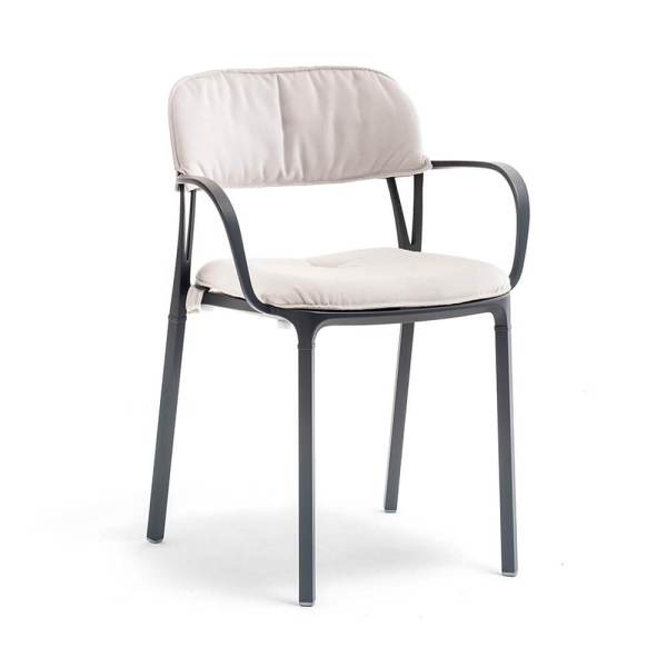Zit- en rugkussens bekleed met polyurethaanschuim en bedekt met stof (geschikt voor outdoor) maken de Intrigo-collectie nog comfortabeler.