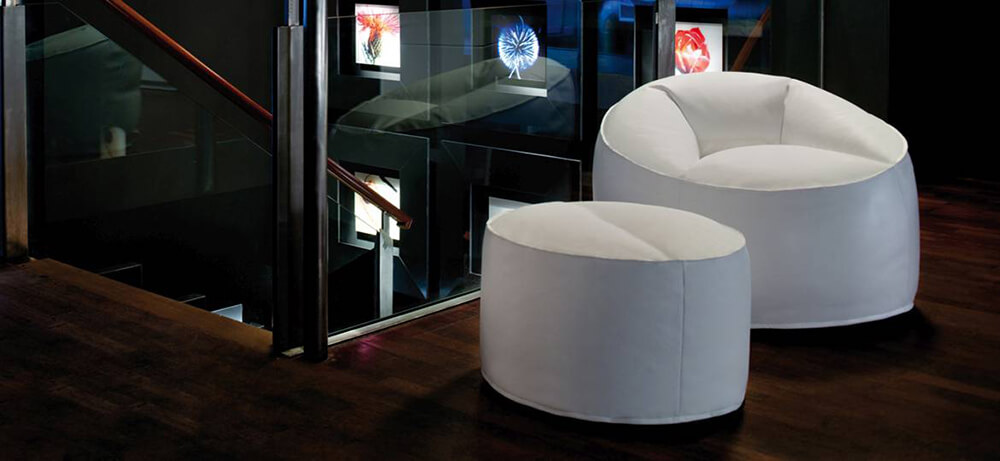 Island van Pedrali is een ontwerp van Claudio Dondoli & Marco Pocci. Geschikt voor ontspanningsruimten, wachtkamers of woonkamers. Fauteuil versie Ø 900 mm, in twee kleuren beschikbaar (zwart, zilver). Bekleed met nylon of brandvertragend ecoleer, licht en gemakkelijk te dragen met handvat. Anti-slip bodemoppervlak.