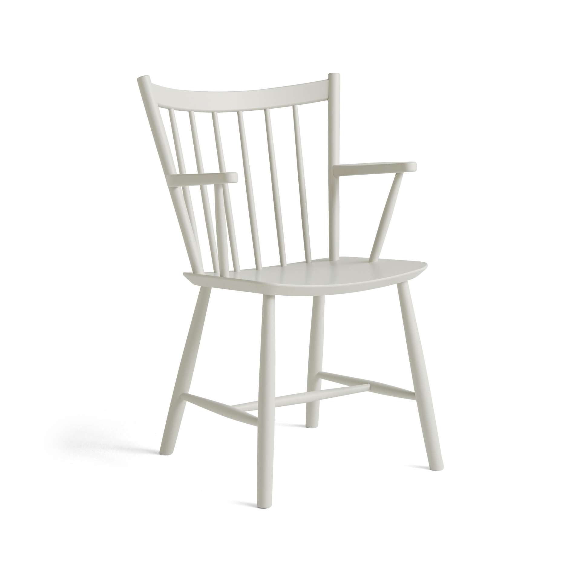 Deze klassieke stoel met armleuning heeft een licht hellende rugleuning. Door de brede zitting en fijne rugleuning in eiken of beuken is de houten stoel erg comfortabel. J42 is gemaakt van FSCTM gecertificeerd hout en is verkrijgbaar in verschillende afwerkingen en kleuren.