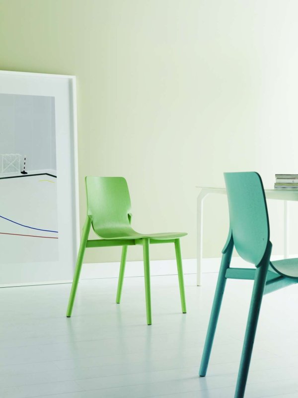Buighouten stoel Kayak 047 voor Alias van Patrick Norguet. Massief eiken of beuken constructie met buighouten kuipje. Afwerking transparant gelakt hout, of houttint of open-porie gelakt in diverse kleuren.