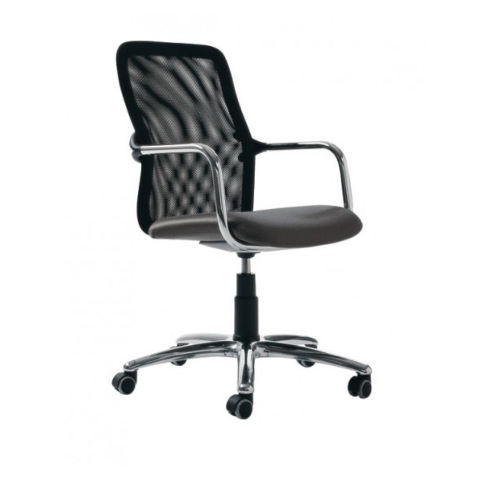 Konca is een stoel met armleuning, een nette rugleuning en gewatteerde en gecoate zitting. Het onderstel is van metaal en heeft 5 wielen. Konca zijn design is eenvoudig en zeer aangenaam.