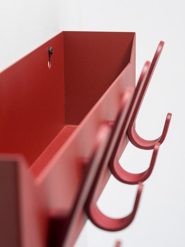 De kapstokken uit de Krok familie van Van Esch, ontworpen door Mia Lagerman & Ehlén Johansson, blinken uit in eenvoud. De ontwerpers hebben het design teruggebracht naar de essentie. Krok Box is een slimme wandkapstok en opbergbox ineen. De box van geëpoxeerd staal met kunststof haken biedt handige extra ruimte voor spullen als sleutels en post. Krok Box kan op hout, steen of beton worden bevestigd met de twee bijgeleverde, zwarte schroeven. Verkrijgbaar in zeven kleuren.