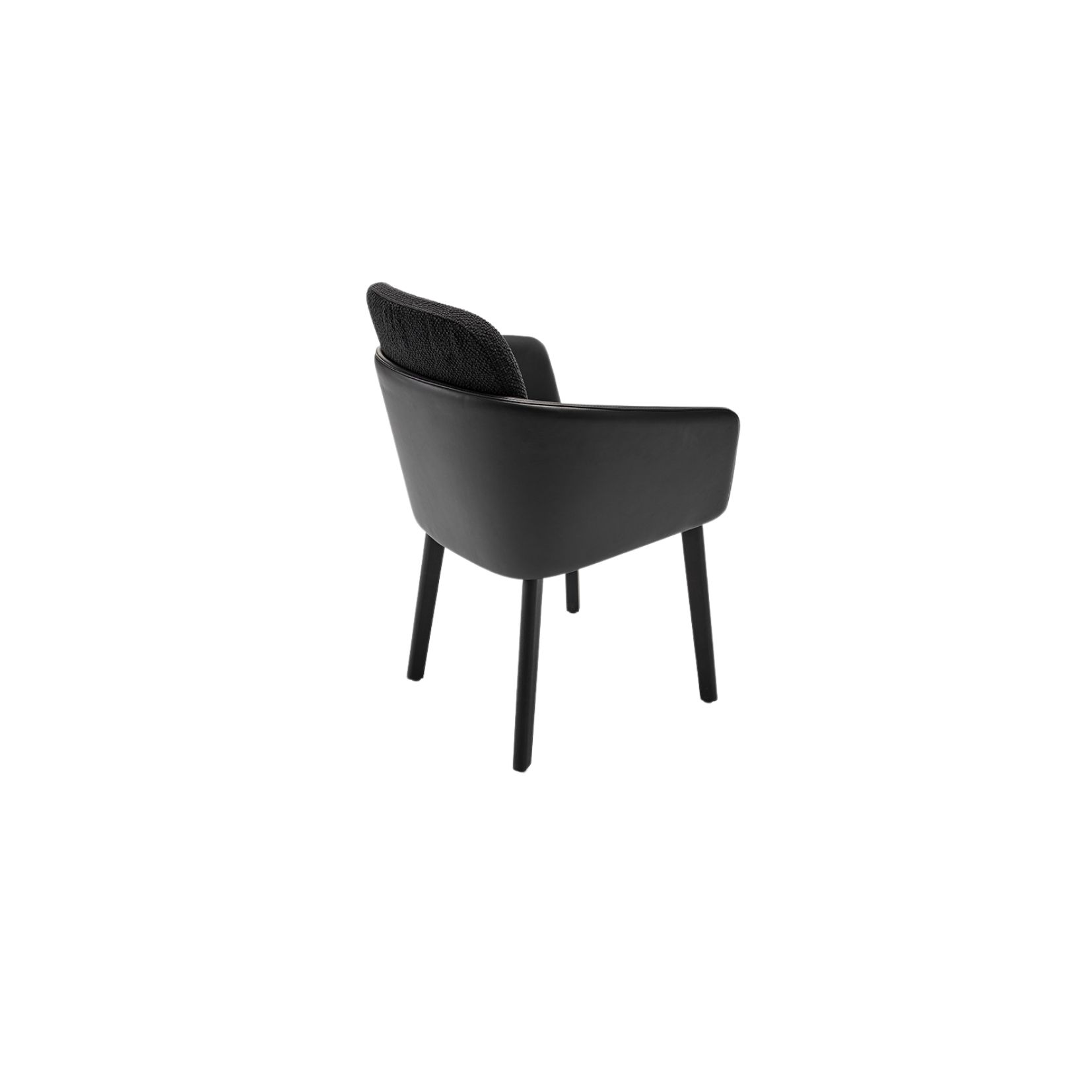 Laze ontworpen door Gudmundur Ludvik is een luxe eetkamerstoel met armleuning en onderscheidt zich vanwege een uitermate hoog zitcomfort. Dit comfort word gecreëerd door de ‘losse zit en rug kussens’ en een elastisch net in de zitting van de stoel. Laze heeft een elegante en verfijnde uitstraling. De strakke gestoffeerde kuip met de losse kussens geeft een mooi contrast en creëert daar waar het nodig is comfort. Doordat het zit- en rug kussen in een ander materiaal (stof of leder) kunnen worden uitgevoerd, zijn er bijzondere materiaal combinaties mogelijk.