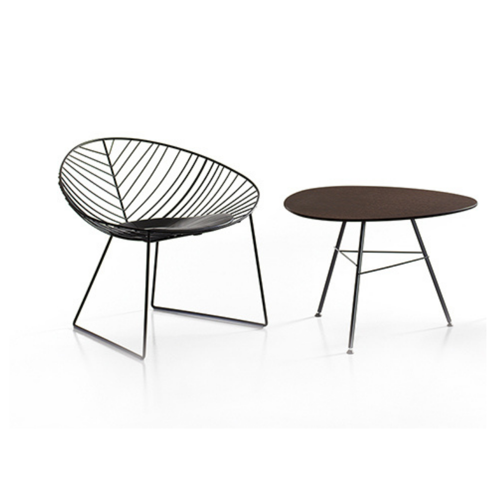 De Leaf sled lounge ontworpen door Lievore Altherr Molina in 2005 is een kleine fauteuil met sledevoet gemaakt van gelakt staal. De Leaf sled lounge is verkrijgbaar in 3 kleuren: wit, groen en moka.