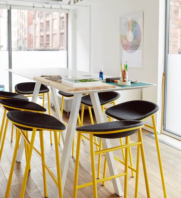 De zitting van de LJ-serie is gemaakt van gerecycleerde PET-flessen. Het ontwerp van de stoel brengt traditionele productiestappen terug naar een slimme 3D-perstechniek. PET Felt is gerecycleerd/recycleerbaar en biedt geluidsdempende eigenschappen en veel zitcomfort.