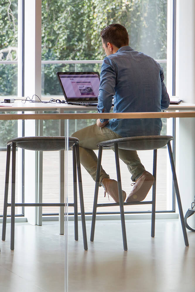 De zitting van de LJ-serie is gemaakt van gerecycleerde PET-flessen. Het ontwerp van de stoel brengt traditionele productiestappen terug naar een slimme 3D-perstechniek. PET Felt is gerecycleerd/recycleerbaar en biedt geluidsdempende eigenschappen en veel zitcomfort.